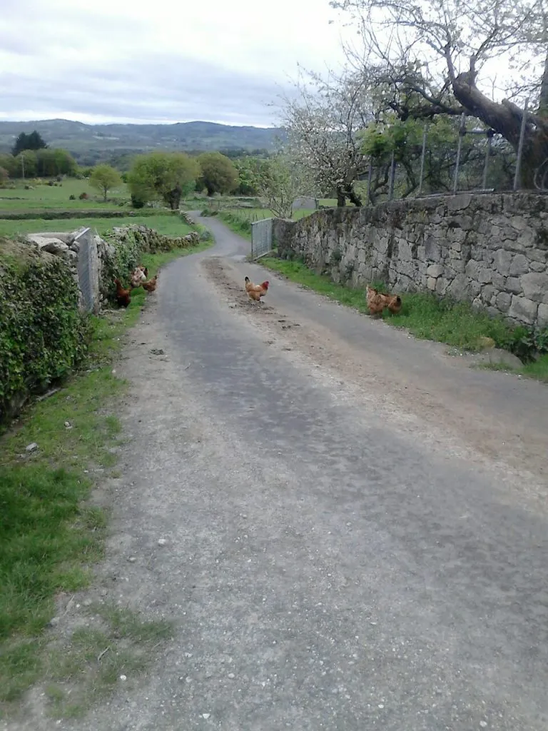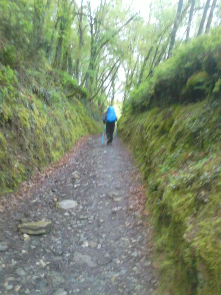 We zijn inmiddels in Galicië aanbeland. Een autonome regio in Spanje, die heel anders is dan we tot nu toe gezien hebben. Ze hebben een eigen taal, Gaelic, meer verwant aan het Portugees dan het Spaans. Obrigado dus in plaats van Gracias. Verder is het hier erg landelijk, veel kleine dorpjes met boerenbedrijfjes. Veel honden ook ( iiiii), maar ik begin er goed in te worden; gewoon negeren. De Dazzer ( hondenverjager) blijft in de tas! En laatste opvallende verschil is dat het hier prachtig groen is. De oorzaak daarvan zit hem natuurlijk in het natte klimaat, waar we vandaag een aardige demonstratie van kregen. Maar als de zon dan weer gaat schijnen, is het hier prachtig!