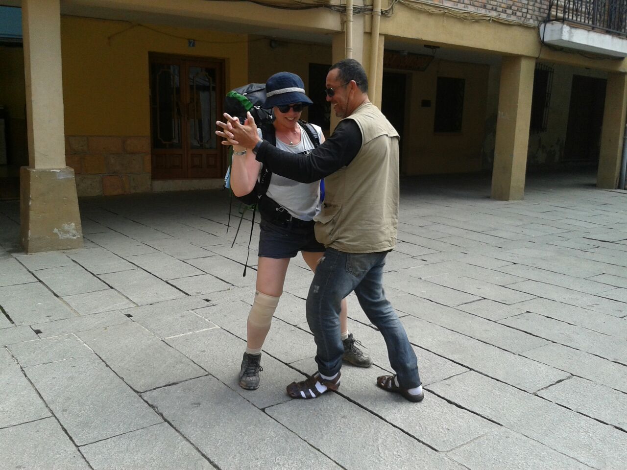 In de Rioja is het heerlijk picknicken, maar in het plaatsje moet je natuurlijk wel even een dansje doen met een toevallig passerend Braziliaan: