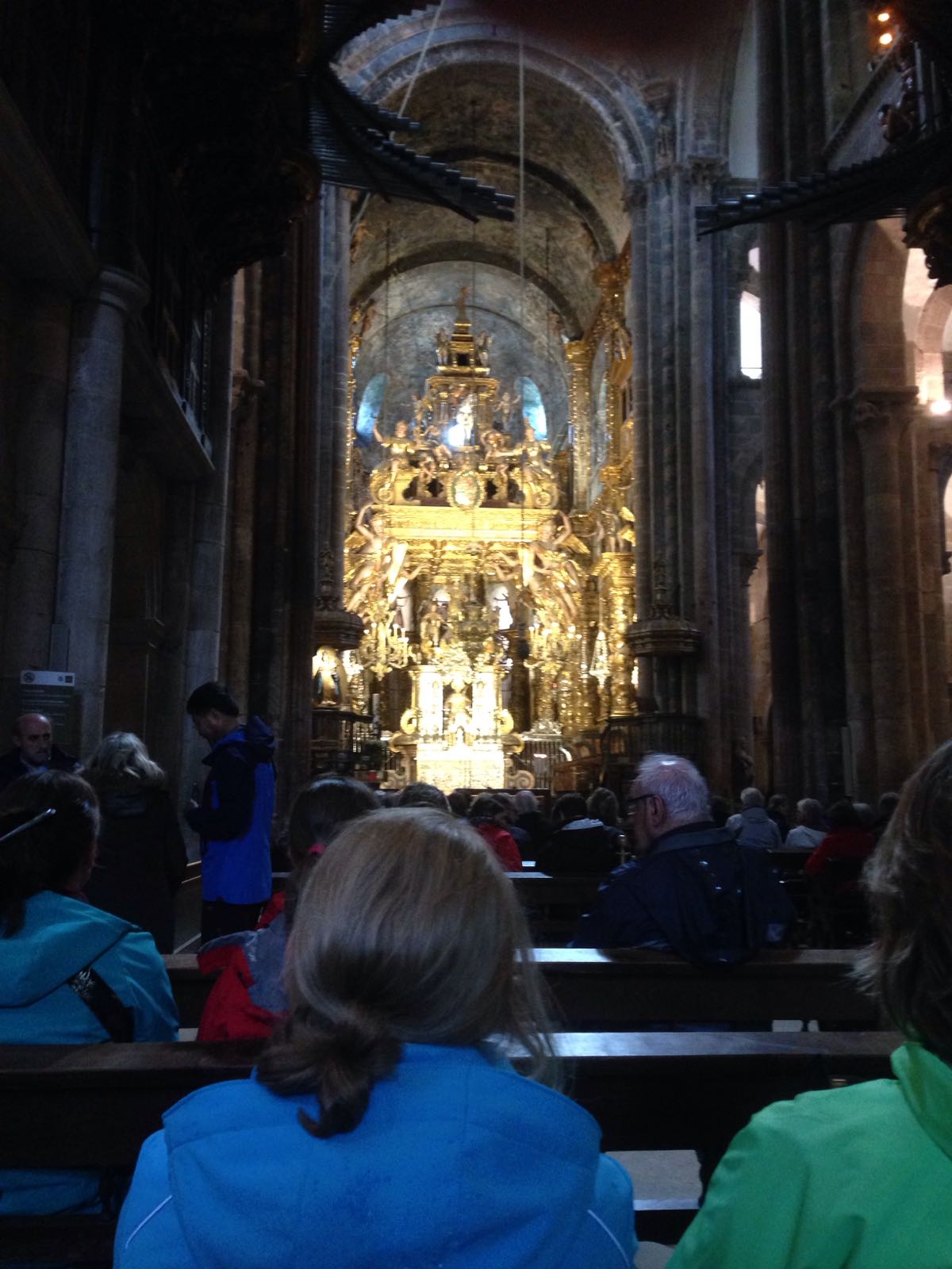 Ikzelf heb gisteren Santiago gehaald. Loopmaatje Michel is echter achterop geraakt. Hij heeft veel pijn aan zijn rug en been. Overbelast of verrekt, maar hij kon het normale tempo in ieder geval niet meer bijhouden. Bij gebrek aan smartphone was het ook lastig om te achterhalen, of hij überhaupt en zo ja op welke dag hij Santiago zou bereiken. Vandaag na de mis ontving ik gelukkig een telefoontje dat hij die middag Santiago zou bereiken. Goed gedaan, Michel!