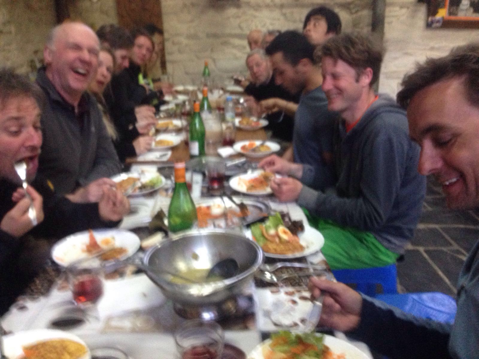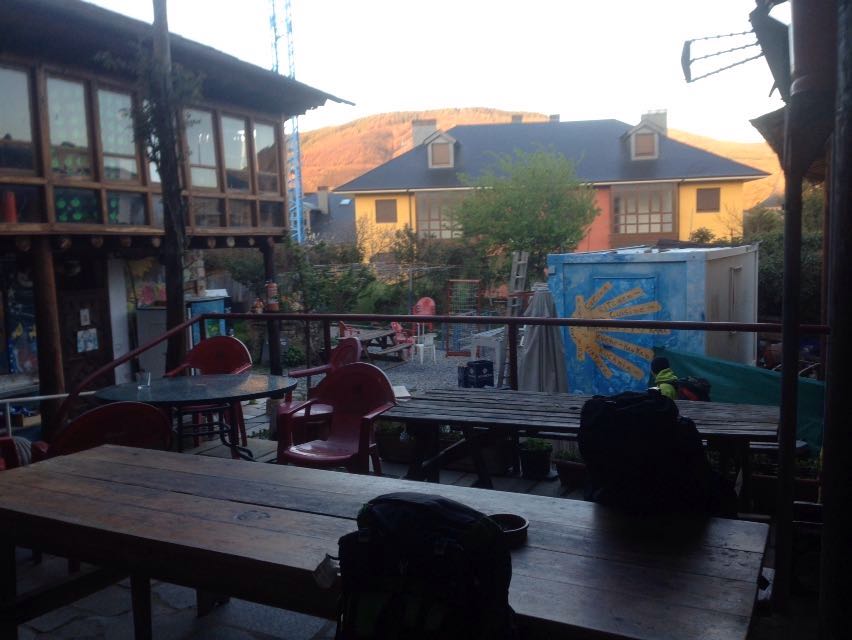 Op de Camino zijn er veel verschillende albergues; van luxe tot tamelijk basic. Van kerkelijke gedreven tot ‘alternatieve’ albergues. Vorig jaar heb ik op dit stuk van de Camino vooral in de luxere herbergen gezeten, ingegeven door onze Brazileiro Rosita, die vooral voor dit segment ging. Dit keer wil ik dus ook wat andersoortige albergues proberen. In Villafranca gingen we daarom voor een oude, traditionele Albergue (Ave Fenix de familia Gato). Al sinds jaren gedreven door twee oude Spaanse heren, die de Camino een warm hart toedragen. Het was er redelijk spartaans, met een onverwarmde ‘slaapschuur’ en zeer basic sanitair. Maar wel met heel veel gezelligheid en gezamenlijk diner en ontbijt. Heerlijk eten overigens! En voor zo’n superleuke plek waar jong en oud, allerlei nationaliteiten, samen eten en na het diner gezamenlijk een potje kaart spelen (het onnavolgbare spel ‘asshole’) kan alle luxe me gestolen worden.