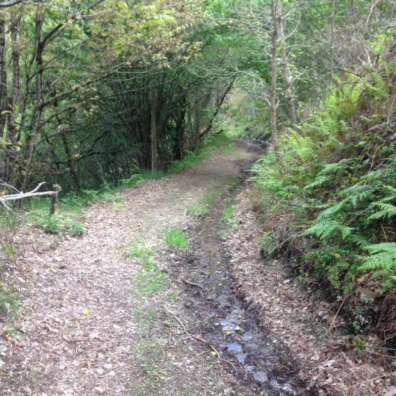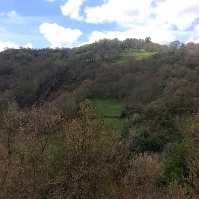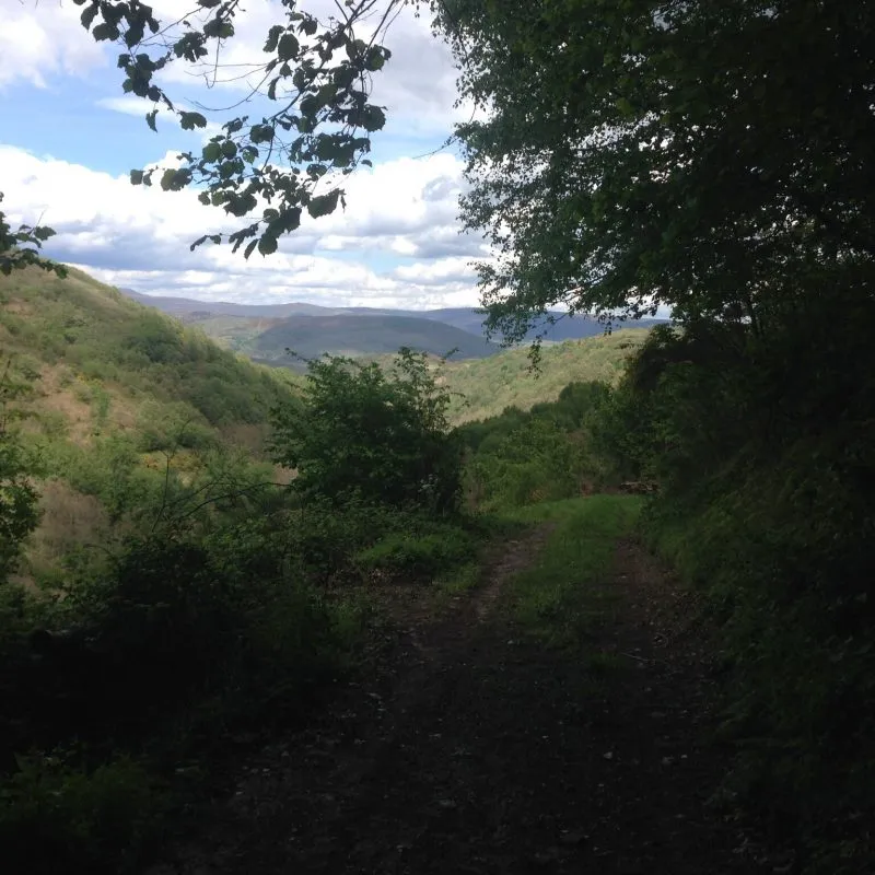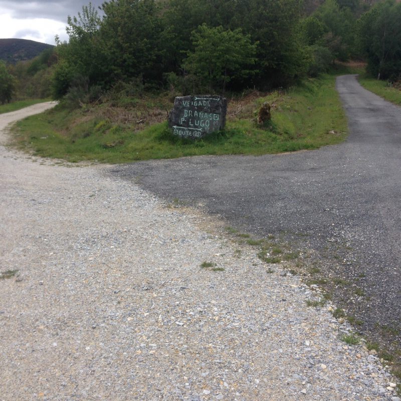 De route leek echter toch langer dan 1,5 uur, want volgens het kaartje zat ik ongeveer op de helft. Maar dat zou evengoed moeten lukken binnen 3 uur. Bovendien zag ik een wegwijzer naar Las Herrerias, die 4,4 km aangaf, dus ik vervolgde mijn route, die nu langs de rivier door het bos ging. Om 17:30 uur, een uur later liep ik echter nog steeds door het bos, terwijl ik om 18:00 bij de herberg moest zijn, voor de voorbereidingen van het diner voor de pelgrims. En omdat ik geen enkel bordje meer tegenkwam, begon ik te twijfelen of ik niet ergens een afslag gemist had. Volgens het kaartje had ik voor het eindpunt ook nog het dorpje San Julian moeten passeren en ook dat was nog in geen velden of wegen te bekennen. Ik had ergens onderweg een soort splitsing gezien, dus ik besloot terug te gaan en dat te proberen. Inmiddels was het al over zessen en leek deze afslag alleen maar verder het bos in te gaan.