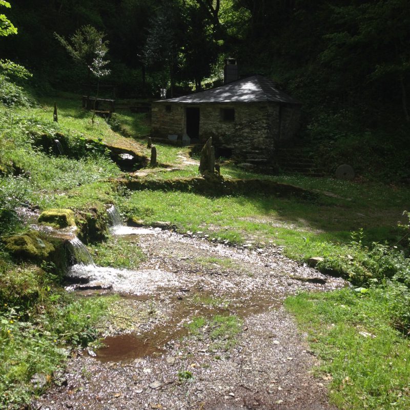 Natuurlijk was er in de wijde omgeving geen enkel teken van leven te bekennen, geen wegwijzers, geen WiFi, geen googlemaps en ik begon ‘m toch wel enigszins te knijpen. Het was waarschijnlijk toch niet zo verstandig onvoorbereid op weg te gaan. Maar goed, niks meer aan te doen. Ik besloot dat het waarschijnlijk het verstandigste was om de weg weer helemaal terug te lopen, via watermolen, anders zou ik zeker verdwalen. Dat zou dus zeker nog 1,5 uur duren en dat betekende dat ik niet op tijd zou komen voor het diner. Gelukkig had ik mijn telefoon wel bij me en kon ik Myriam een berichtje sturen, dat ik het niet ging redden omdat ik enigszins verdwaald was geraakt in het bos. ‘Ok’ was haar korte antwoord. Ik dus zo snel als ik kon de terugweg hervat, gelukkig merendeels bergafwaarts. Ik kwam uiteindelijk om 18.30 aan in de albergue. Precies op het moment dat de pelgrims aan tafel gaan! Ik had dus uiteindelijk zo’n 4,5 uur gewandeld. Pfff, dan denk je even een stukje te gaan lopen. Een beetje een naïeve Hollandse gedachte. Gelukkig had Carolina zonder problemen de honneurs waargenomen tijdens het diner. Erg fijn, zo’n lieve collega!