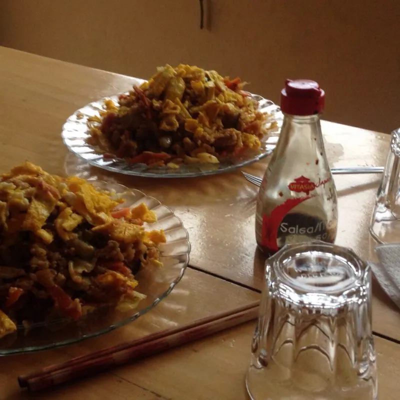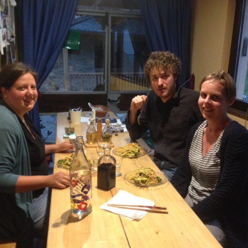 Dan tenslotte óns diner, voor Myriam, Danillo (haar partner) en de vrijwilligers. Dat wordt pas om 21:00 uur geserveerd en wordt beurtelings geprepareerd door één van de vrijwilligers en is dus wisselend. Nathalie het Duitse meisje kan heel goed koken, Daniël heeft wat minder ervaring. Vanavond is het mijn beurt, voor het eerst. Ik ben me nog even mentaal aan het voorbereiden…