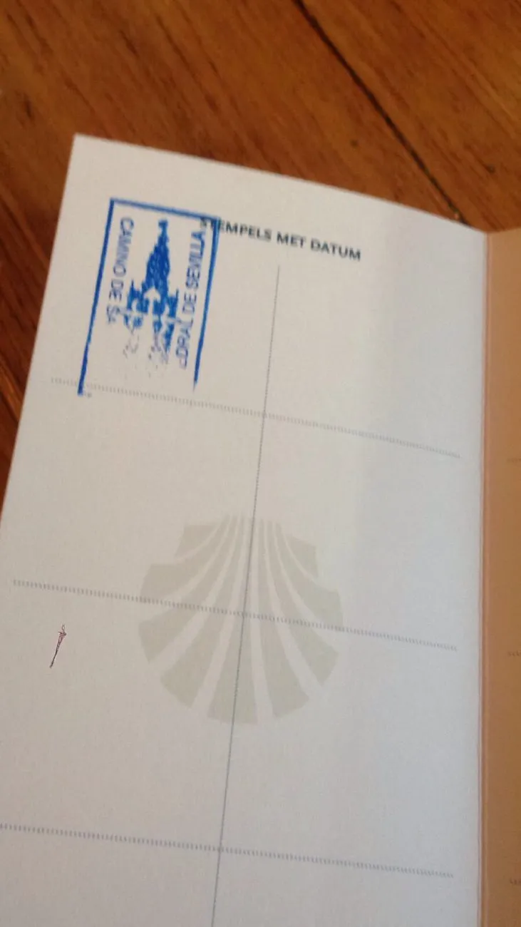 Na een voorspoedige reis, de aeroportbus naar het centrum genomen. Uitgestapt bij de kathedraal voor mijn eerste stempel. De lange rij gemeden, door in een zij-kapelletje waar een doopceremonie op het punt stond te beginnen, aan een medewerker te vragen om een stempel. Volledig in het Spaans en met resultaat. De eerste stempel! De Spaanse juf mag trots op me zijn.